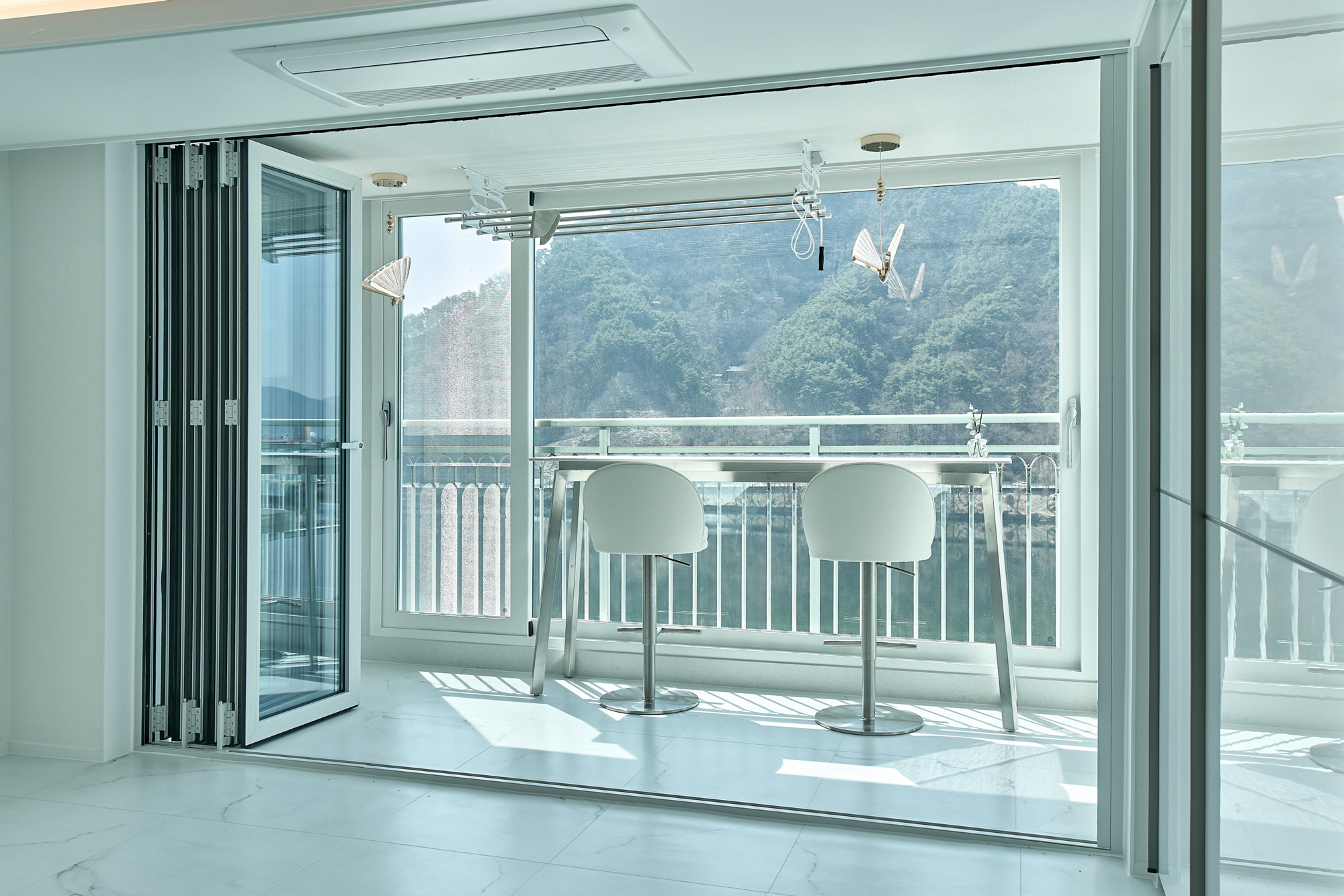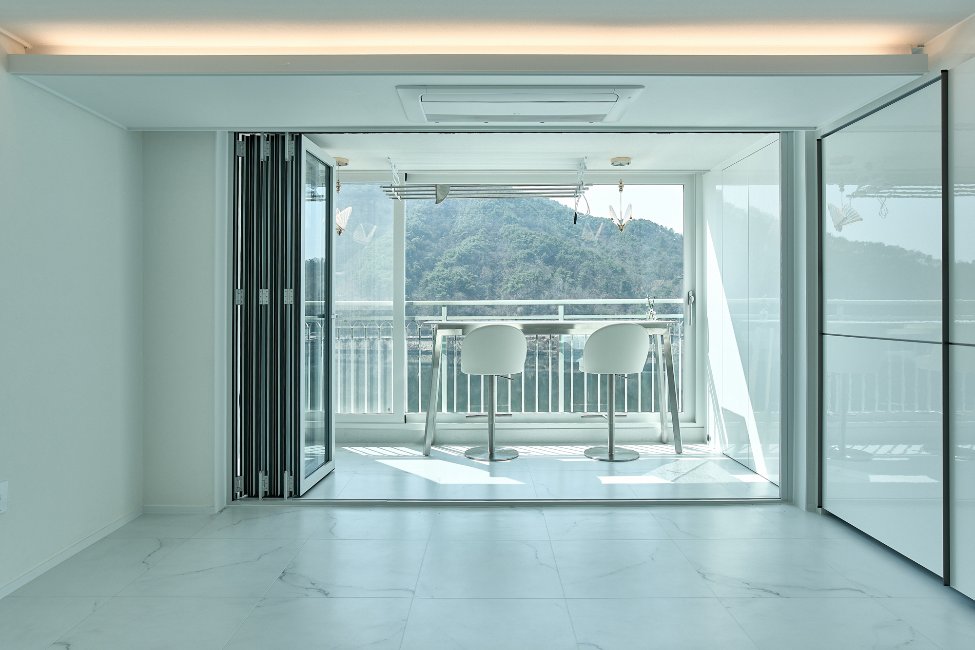 #55평 #고단열 #이중기밀 #고기밀 강원 춘천 강변코아루아파트 after after 설치된 제품 자세히 보기 뷰플러스 슬림 AP248S, AP131S 시스템 터닝도어 FM-Y140, FM-Y70