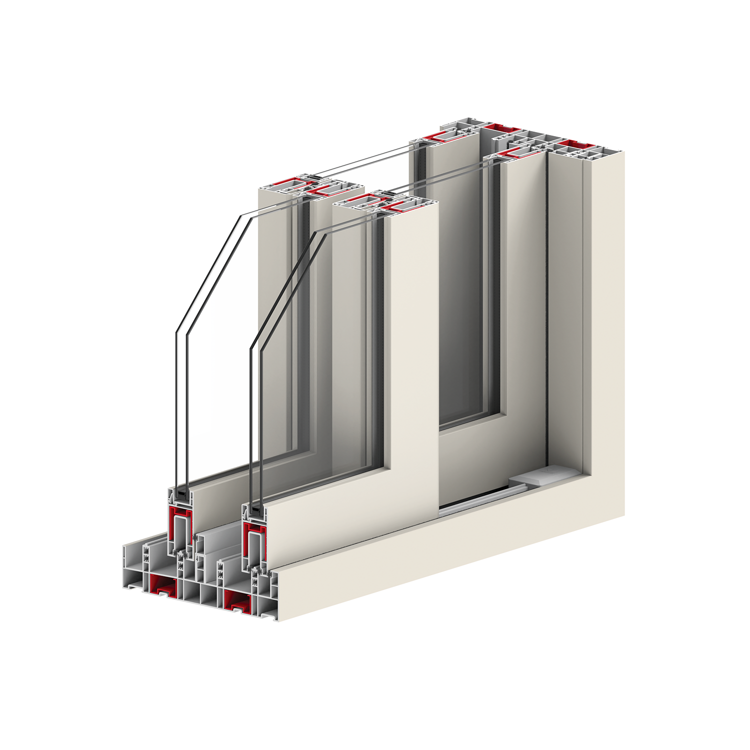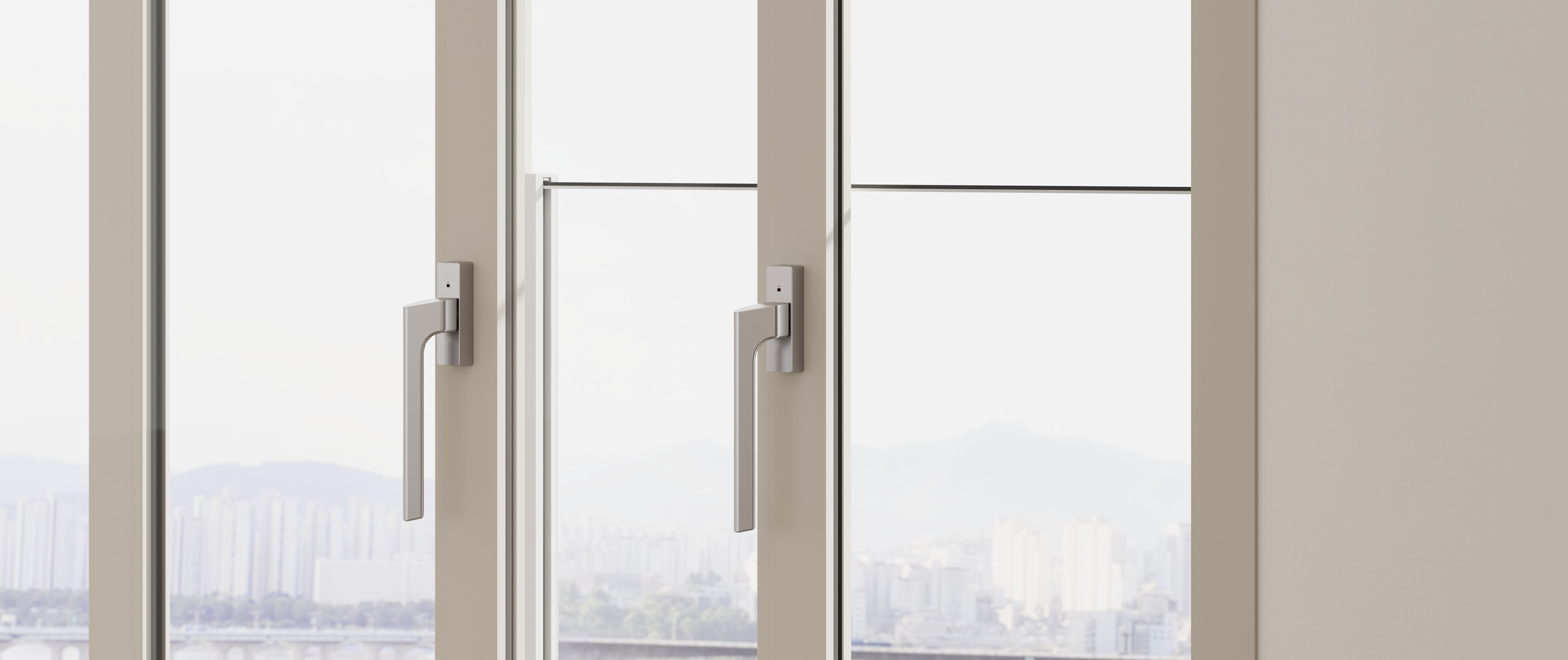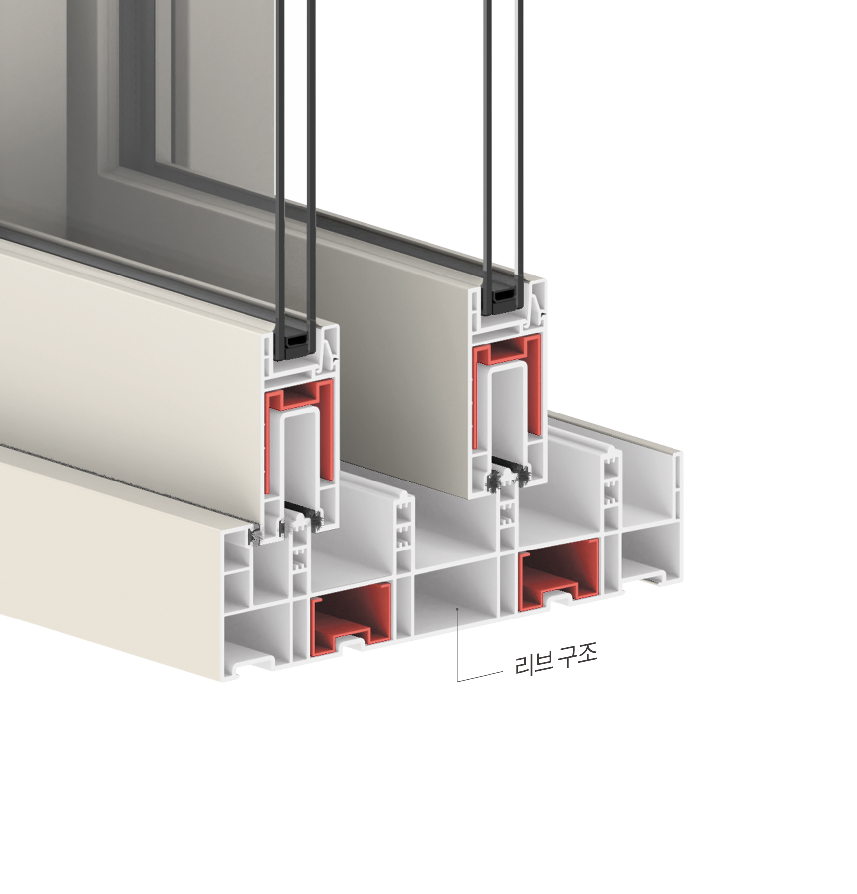 | 기능성 핸들 내부 ASA 레일커버 윈드실더 일체형 차단블록 (이중창 기준) 로이유리 |